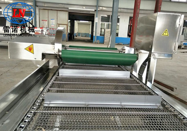 該流水線主要由清洗段、提升輸送段、震動(dòng)瀝水段以及風(fēng)干除水段組成,主要用于袋裝食品的高低溫殺菌后,產(chǎn)品表面油污、油漬的連續(xù)清洗及風(fēng)干。