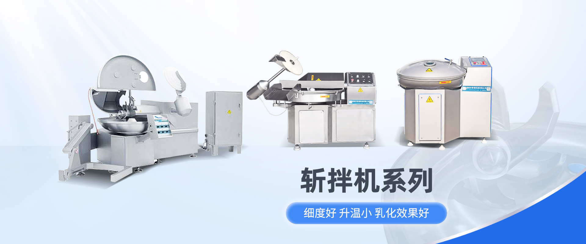 為各類肉制品提供不同的處理方式,包含的設(shè)備有絞肉機(jī),真空滾揉機(jī),拌餡機(jī),鹽水注射機(jī),灌腸扎線機(jī),凍盤破碎機(jī)等多種系列產(chǎn)品。